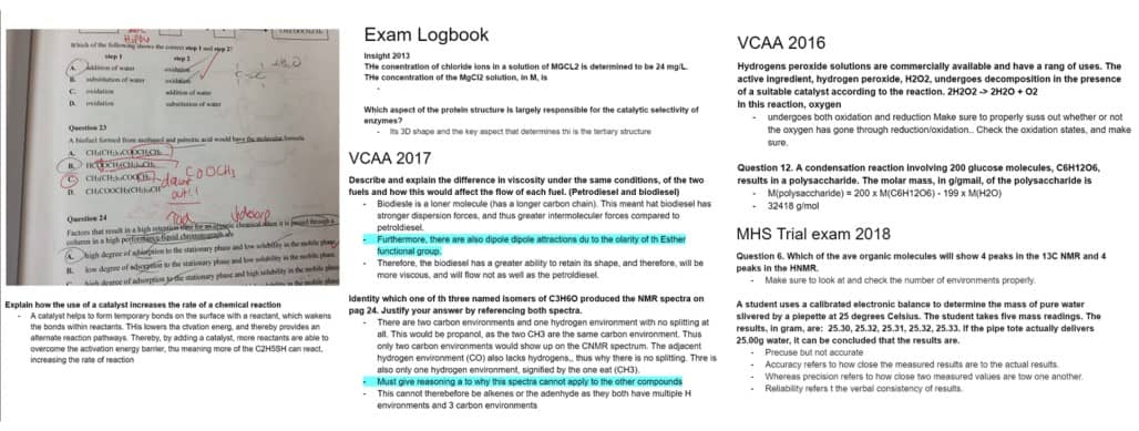 VCE Chemistry is an actually interesting subject. I found the constant asking of the question “why” super helpful. For example, “Why does X occur? Why does Y occur, and why is X related to Y? Why is VCAA asking me this question?” etc.