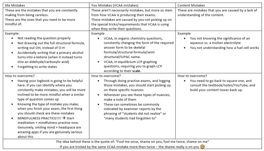I’ve highlighted an excerpt from our “Exam Revision Guideline” document, but the main idea here is that if you are able to identify the type of mistake you are making, it makes it a lot more easier to target techniques to rectifying them.